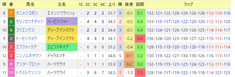 違う競馬場での同距離でのタイム他の比較、同馬競馬場でも距離別にラップの比較をする時等に使用
