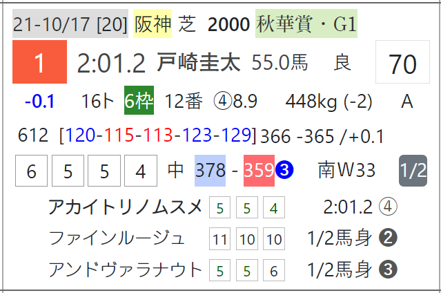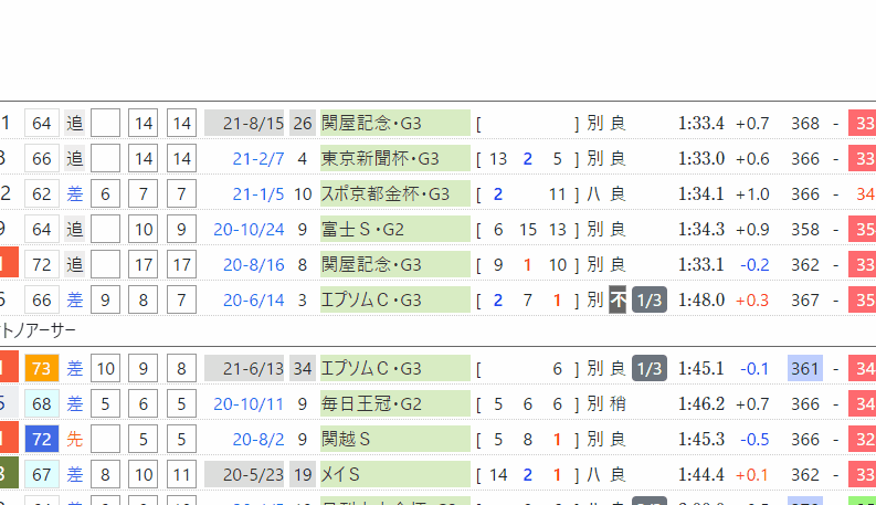 前後差は、前3Fから後3Fを引いた値。マイナスになるほどペースが早く、プラスになるほど遅い。