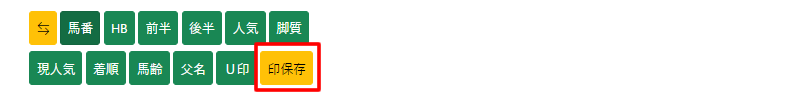 各馬の印を入力し終えて保存しておく必要がある時には、上部にある「印保存」ボタンでセーブをしてください。